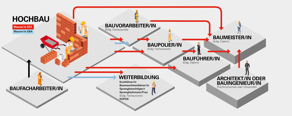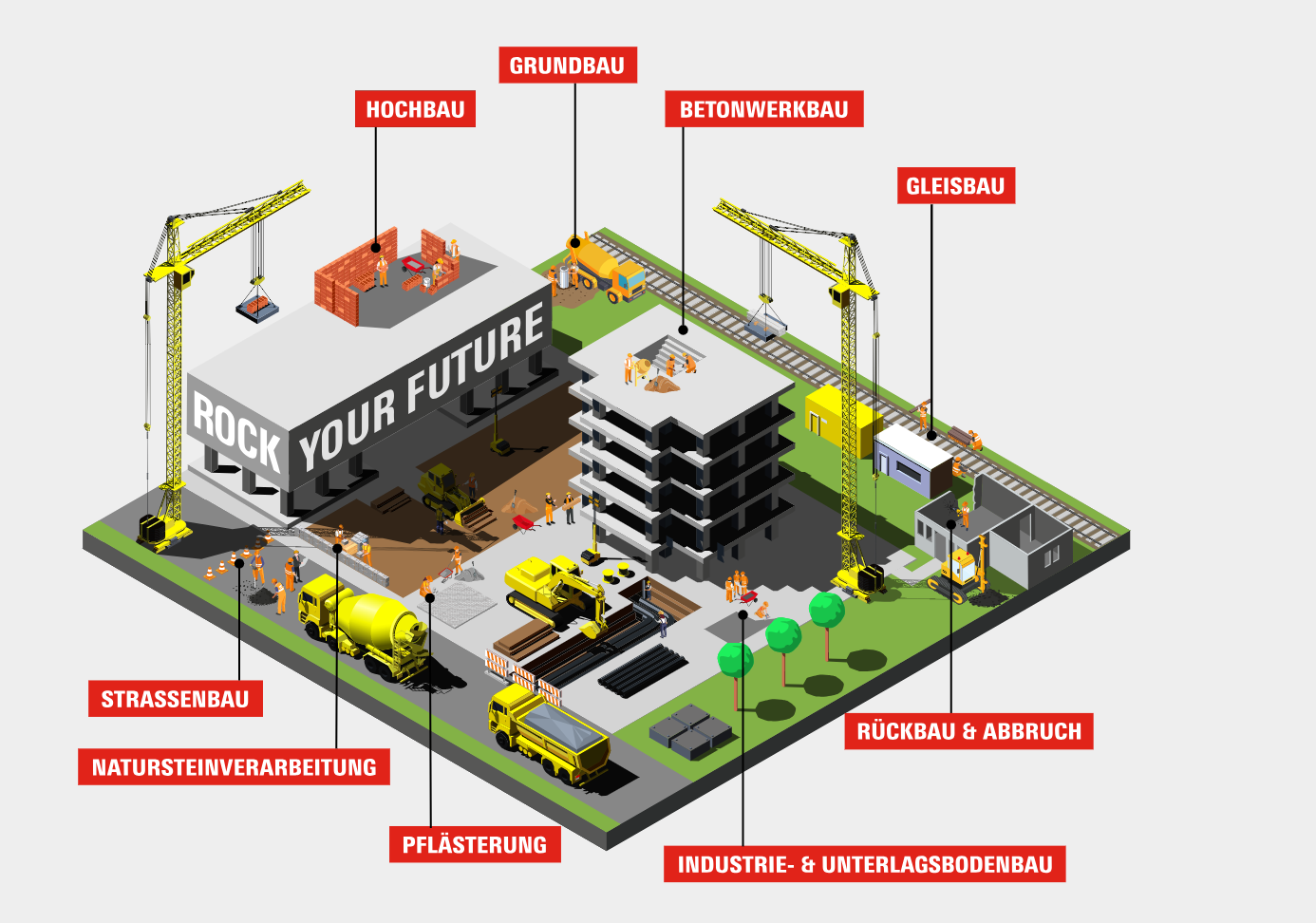 Entdecke die vielfältigen Berufsfelder im Bauhauptgewerbe! Unsere Übersichtsgrafik zeigt dir, wie jeder Beruf mit seiner eigenen Expertise zum Erfolg spannender Bauprojekte beiträgt. Finde heraus, welcher Weg am besten zu dir passt – und starte deine Karriere auf dem Bau!
